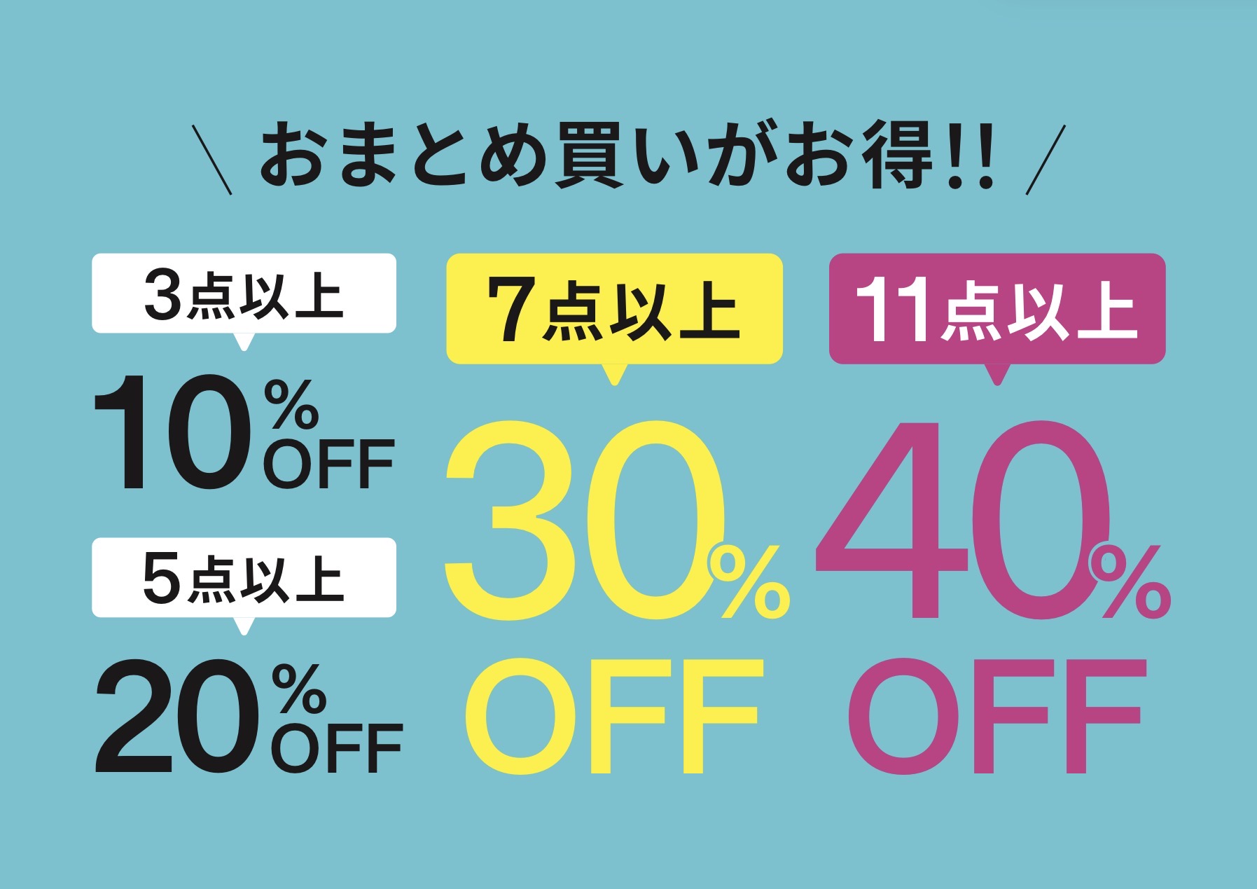 购买11件或以上商品可享40%折扣
