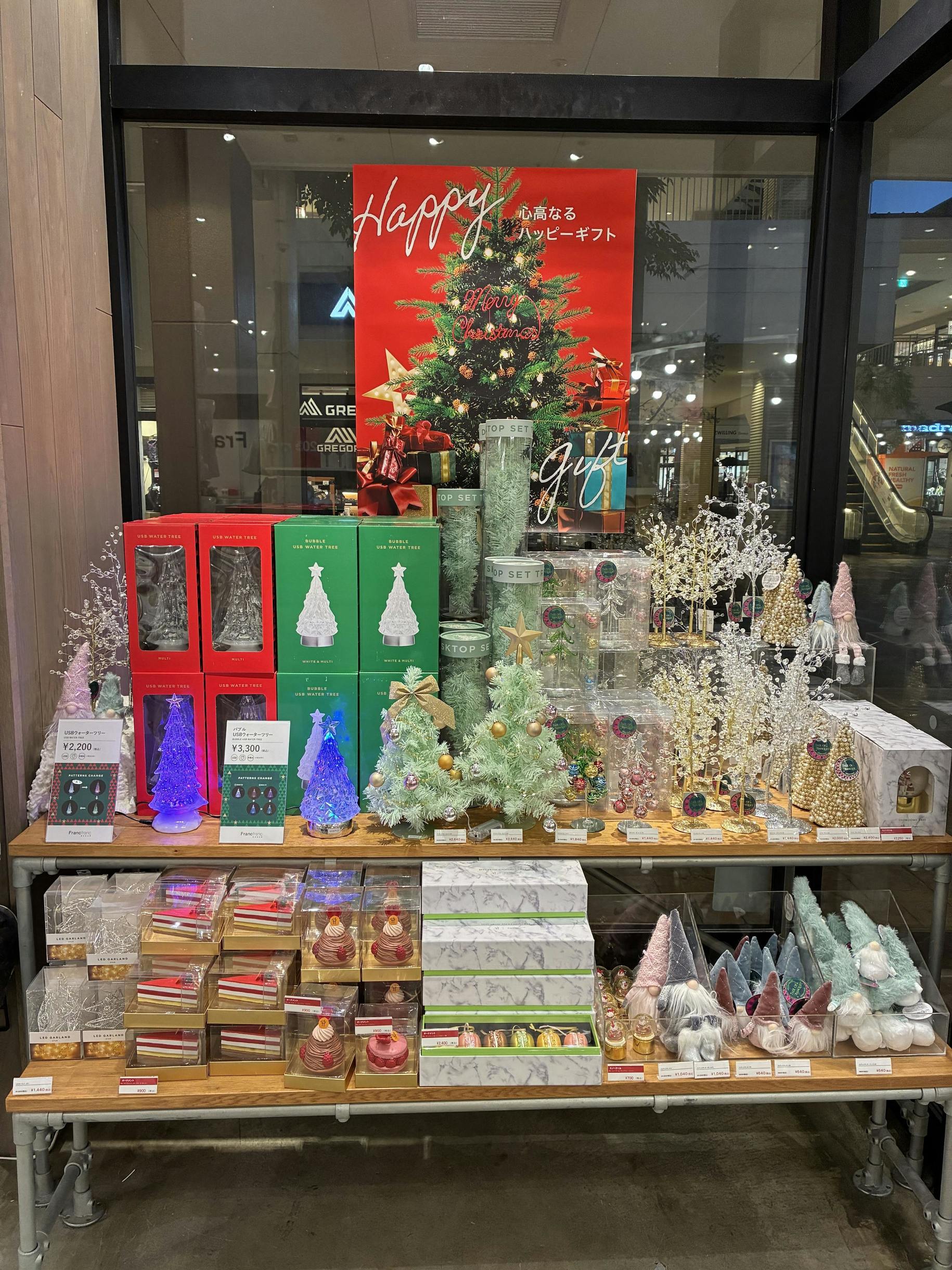 每年都大受欢迎的LED灯闪闪发光的水树、可装饰在桌子上的小巧圣诞树及装饰品等