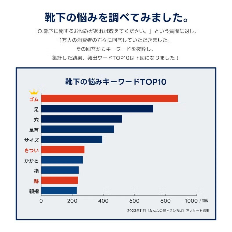 足首は段階的な編み地(くちゴムなし)と丈感で、ずれにくく締め付けにくい仕上がりに。