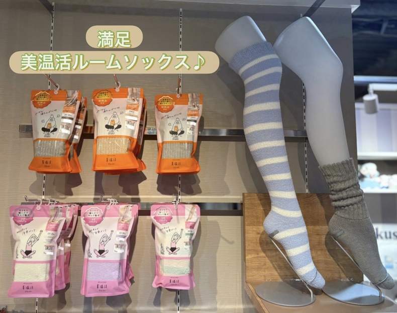 在干净清新的空间里,有熟悉的福助满族商品、腿部服饰、内衣、原创T恤等。我们提供原价 30% 至 70% 的折扣,并提供男士、女士和儿童商品,因此我们期待着全家人光临本店。