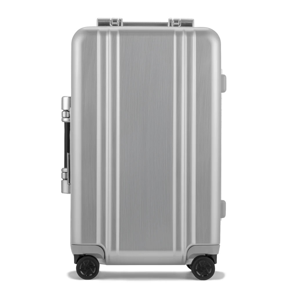 美丽金属质感的设计与顺畅的双轮脚轮设计让您移动时很舒适。最适合商务或1~2晚旅行。