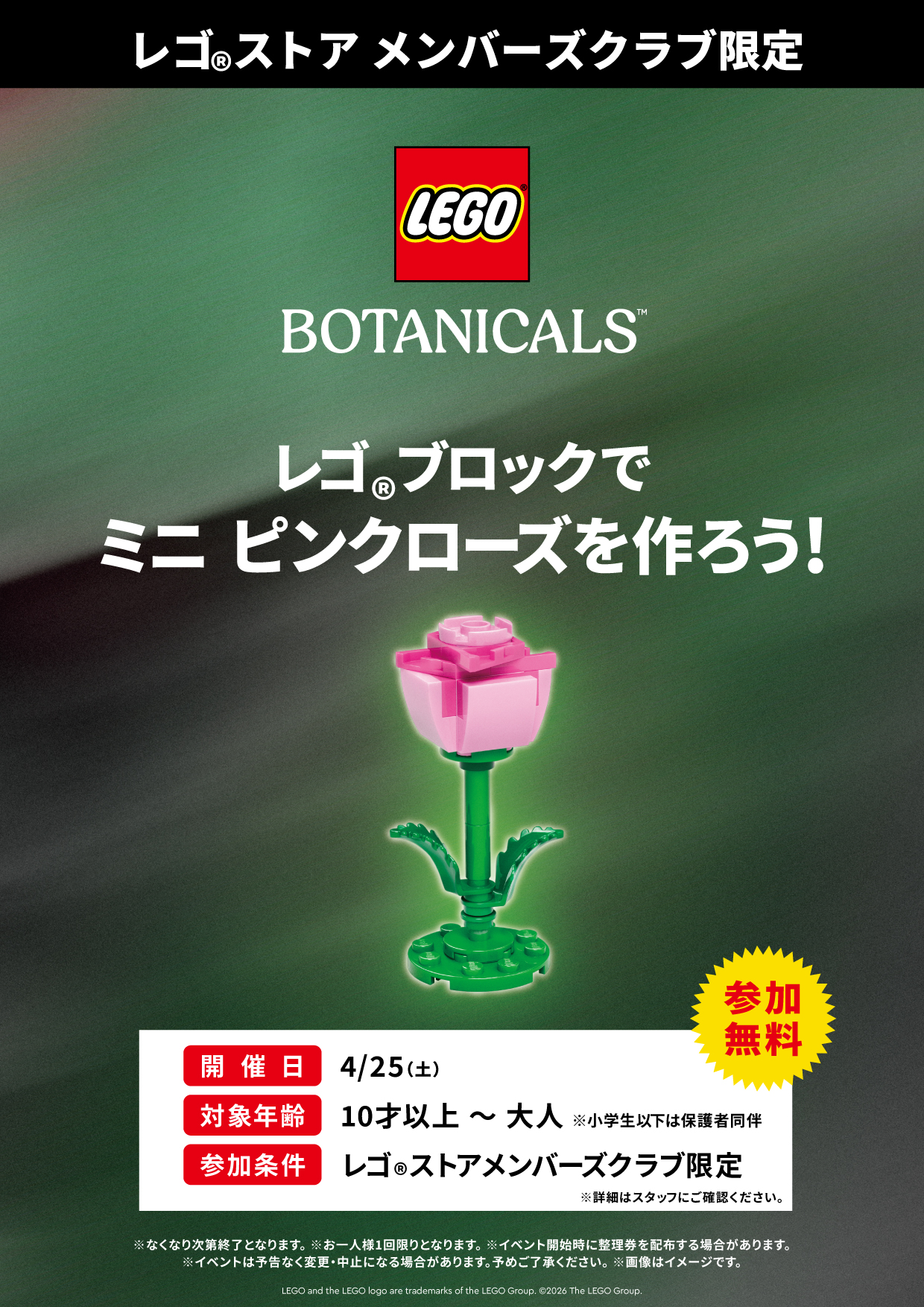LEGO®store会员俱乐部独家!“让我们用乐高®积木搭建一朵迷你粉红玫瑰吧!”