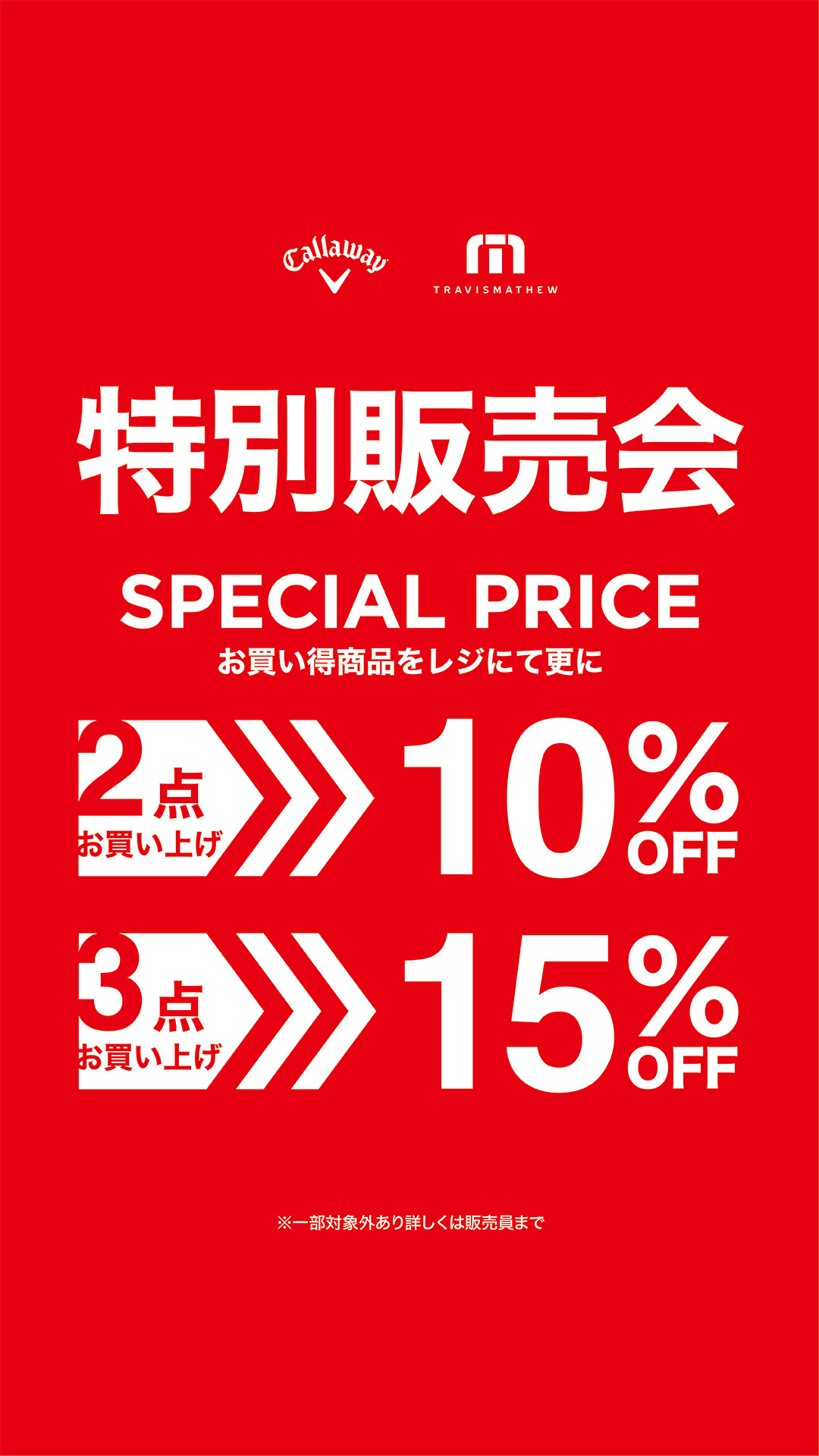 顶部最新信息商店新闻[Callaway] 超值优惠正在进行中! [Callaway] 超值优惠正在进行中! 运动&户外北区 2F Callaway 现在Caroway正在进行优惠活动!!活动期间,购买对象商品2件以上在收银台可再优惠10%,购买3件以上在收银台可再优惠15%。恭候您的光临。 运动&户外北区 2F Callaway卡拉威 電話番号 0594-88-5828 查看图标说明 查看图标说明