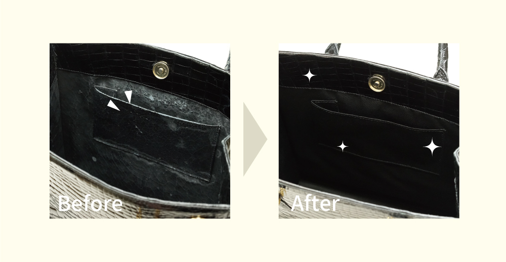 如果您的包包内部发粘或布料脱落,只需更换新布料即可使其焕然一新!