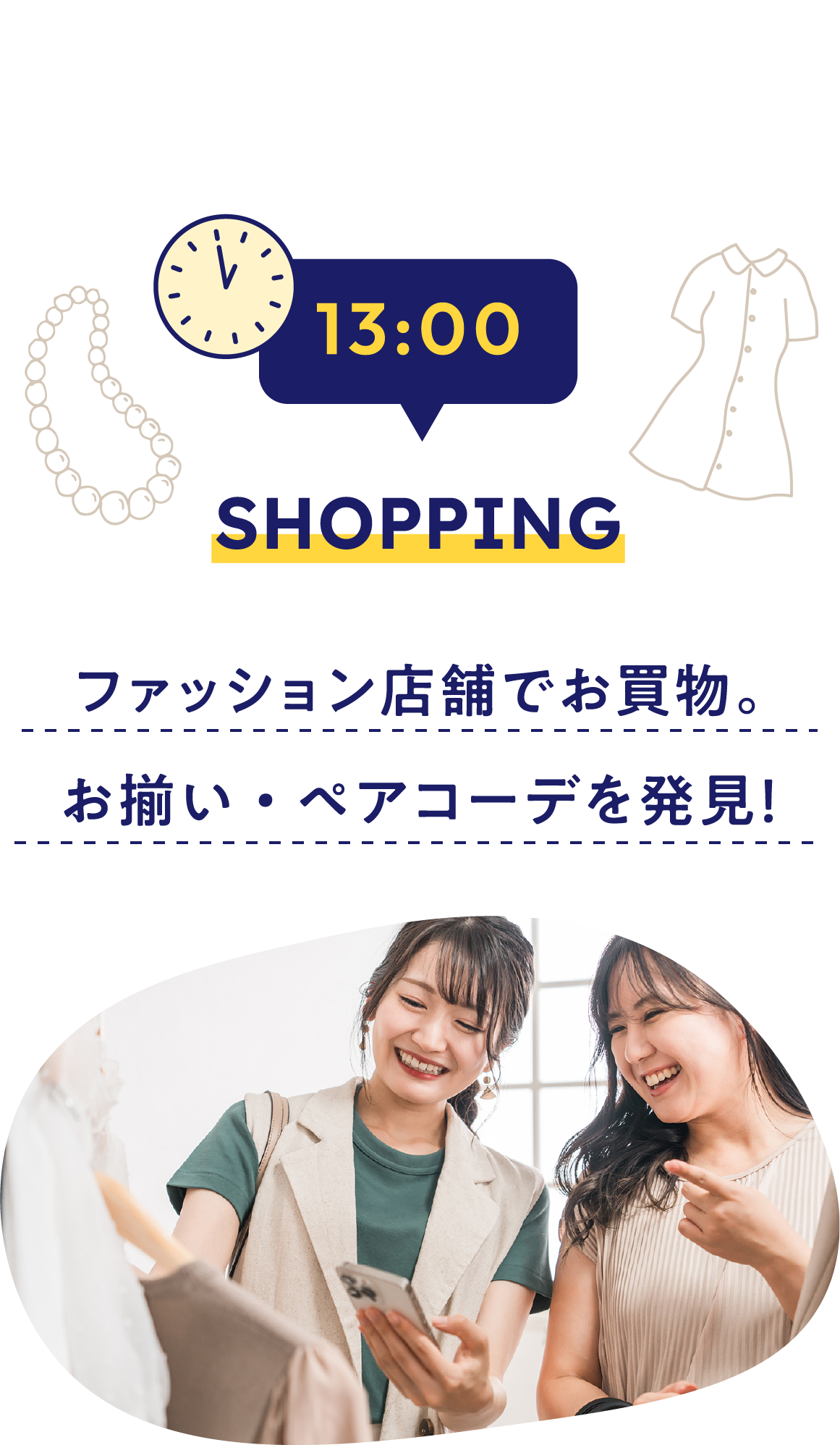 想着“这个,两个人穿可能会很可爱!”,去寻找成套的商品。一边谈论彼此的喜好,一边确认流行的时尚单品。是寻找理想的情侣搭配的令人兴奋的时刻。
