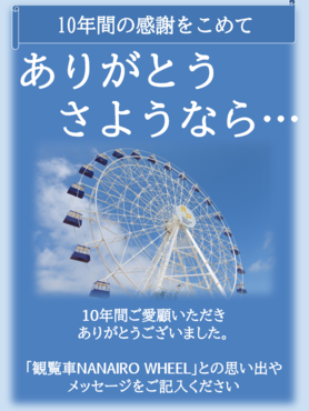 ~いよいよ11/3(月・祝)で営業終了~「観覧車NANAIRO WHEEL」にまつわるメッセージを書こう!