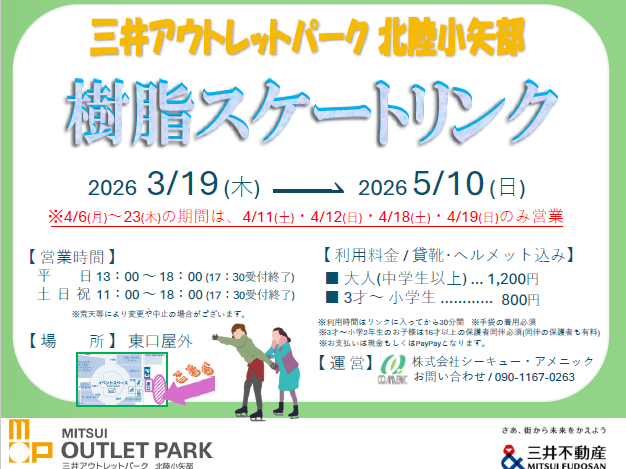 三井奥特莱斯购物城北陆小矢部店开设“树脂滑冰场”❄