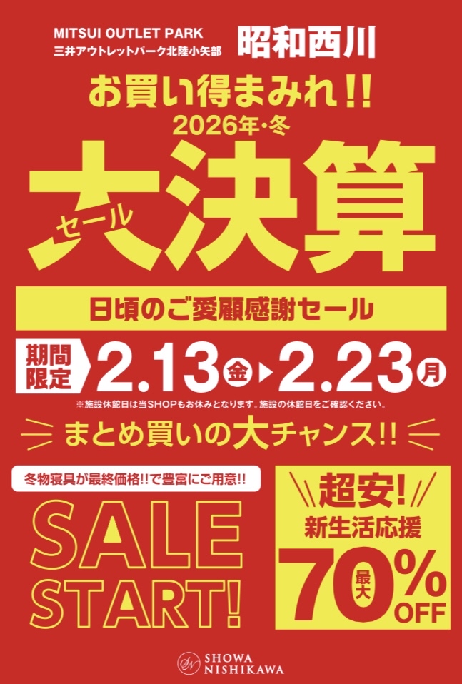 2026年冬季大型清仓大甩卖 将会举行。
