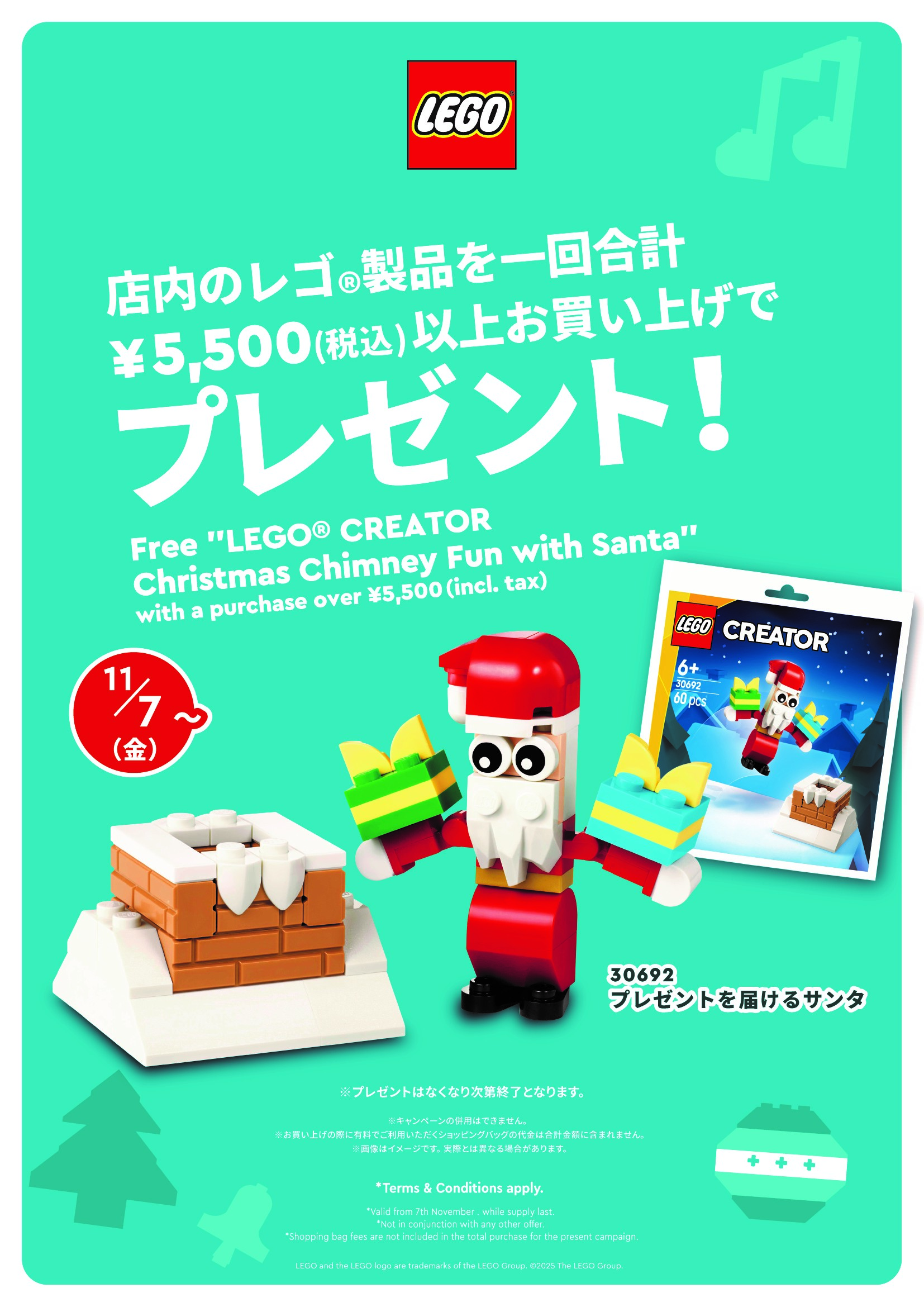 店内のレゴ製品を5,500円(税込み)以上お買い上げの方にプレゼント!