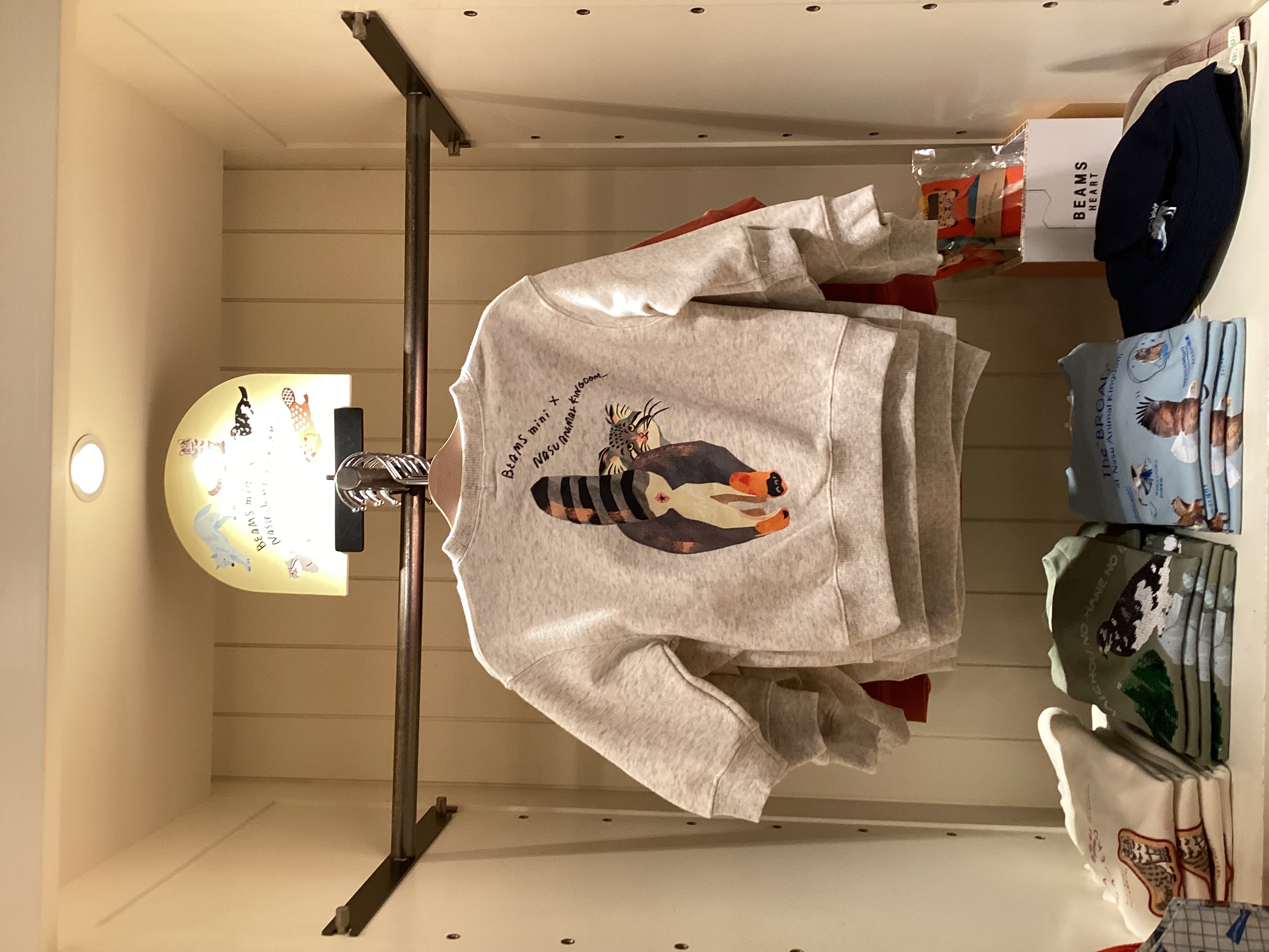 这是双方的首次合作,产品种类繁多,包括印有可爱动物图案的运动衫(动物转身,屁股对着你,这种图案在BEAMS mini 系列中也很受欢迎)、亮片设计的长袖 T 恤、帽子、袜子、环保袋等等!