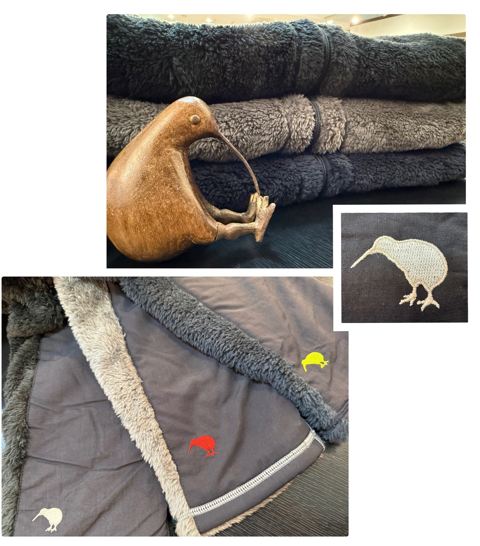这款羊毛夹克带有品牌logo的KIWI刺绣。