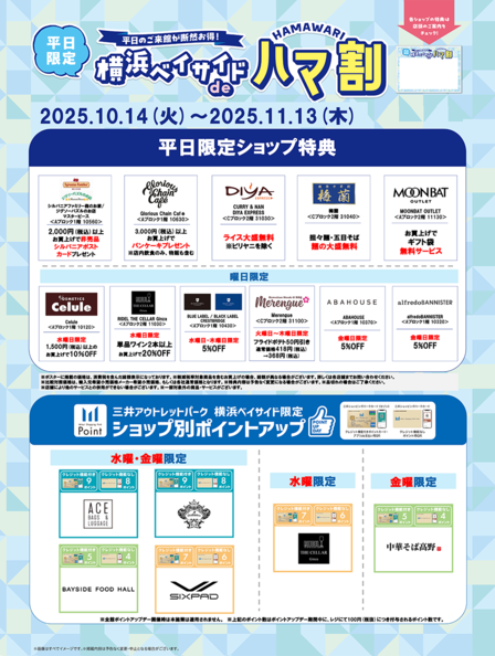 - 【仅限工作日】横滨港湾Hama折扣!商店优惠及各商店专属积分奖励