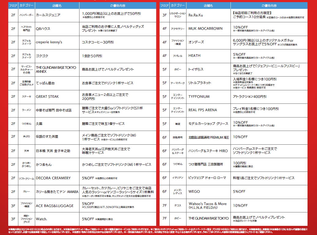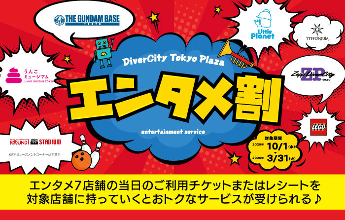 ※ご提示いただくご利用チケットorご利用レシートはダイバーシティ東京 プラザ店での当日ご利用分に限ります。