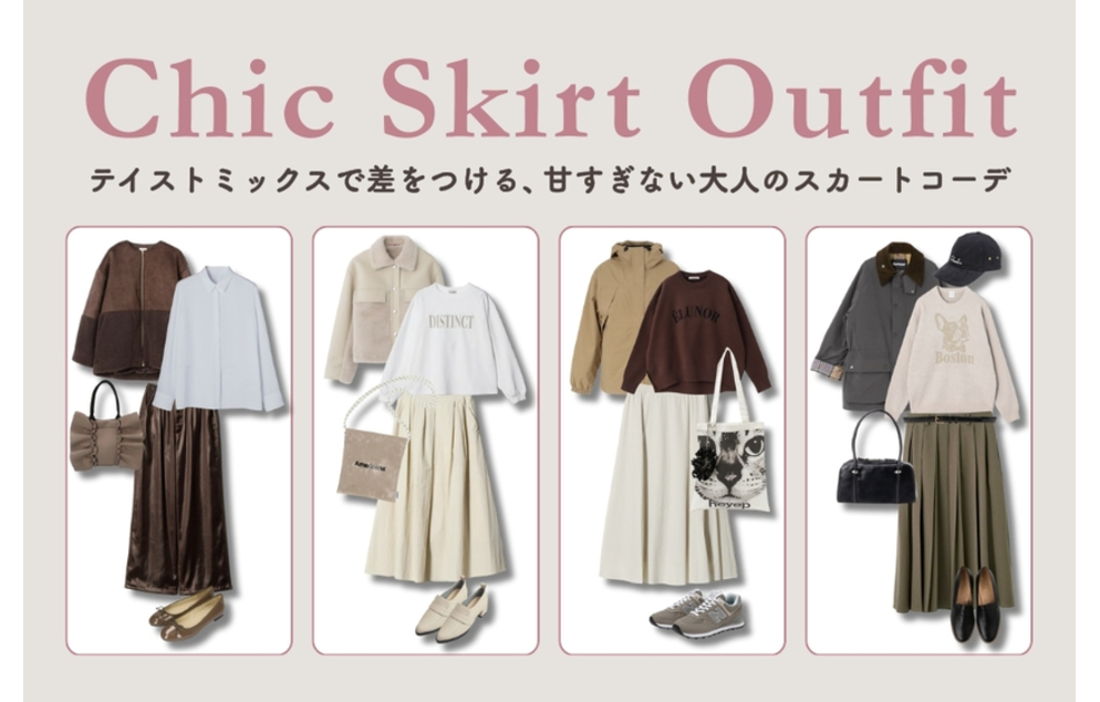 テイストミックスで差をつける、甘すぎない大人のスカートコーデ
