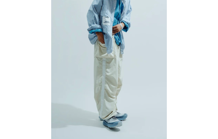 【MOUNTAIN RESEARCH】 「Doogie Cargo Pants」 クライミングパンツの源流とも言われDoogie(=道着)の名を持つクライミングパンツにカーゴポケットをプラス 素材は軽量かつ速乾性に優れたタスランナイロン(suplex)を採用 9部丈のバギーシルエット、サイドのライン、膝のダーツなどWhite Lineパンツのディテールも加わったハイブリッドな仕上がり by A.M. ■価格:¥35,200(税込)
