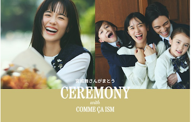 ハレの日にもデイリーにもシームレスで着回せたり、 家族みんなが揃うことでおしゃれ感が倍増したり。 ハッピーに賢く満喫できる COMME ÇA ISMのセレモニースタイルを モデルの宮城舞さんが着こなします。