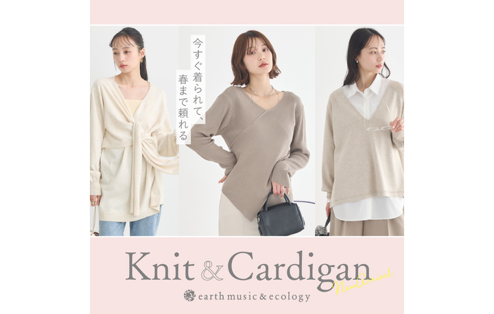 まだ寒さの残る今はアウターの中に、暖かくなったら1枚で。 季節の変り目に長く活躍する 新作ニット・カーディガンが入荷しました◎