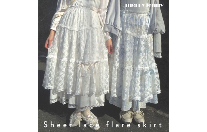 繊細なレース素材に、軽やかなサテンリボンを散りばめた シアーフレアスカート。 ところどころの開きをリボンで飾り、 風に揺れるたびに瑞々しい表情を見せてくれます。