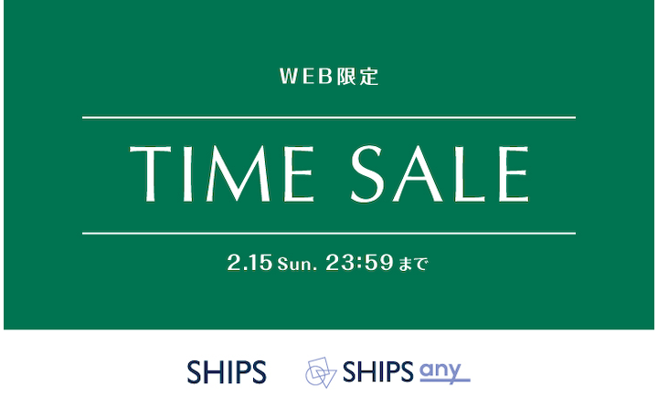日頃よりSHIPSグループをご利用いただき、誠にありがとうございます。 2月15日(日)23:59まで、WEB限定のタイムセールを開催いたします。 期間限定で対象商品がお求めやすくなります。 この機会をお見逃しなく! ■開催日:2026年2月11日(水)0:00~2月15日(日)23:59 ※掲載商品は一部になります。