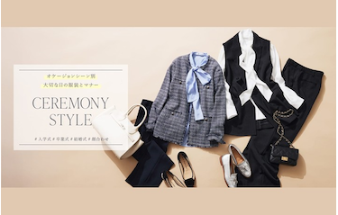 入卒式、保護者会や家族の記念日などの大切な日は、TPOに合った装いで臨みたいもの。 マナーを守ったきちんとした着こなしは、コミュニケーションを円滑にし、自然と心地よく過ごせるものです。 オケージョンの場にぴったりのセットアップやワンピースなどをご紹介いたします。