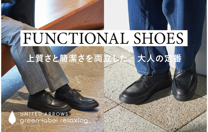 「スニーカー以上革靴未満に見える靴」がコンセプトのスニーカーをご紹介。 実用的なデザインと簡潔さが魅力の<green label relaxing>定番のFUNCTIONALシューズシリーズとなっています。 スニーカーソールの快適な履き心地、着脱しやすいサイドゴア仕様など、大人の足もとに必要なポイントを備えたアイテム。 きれいめカジュアル派の大人にちょうどいい一足です。