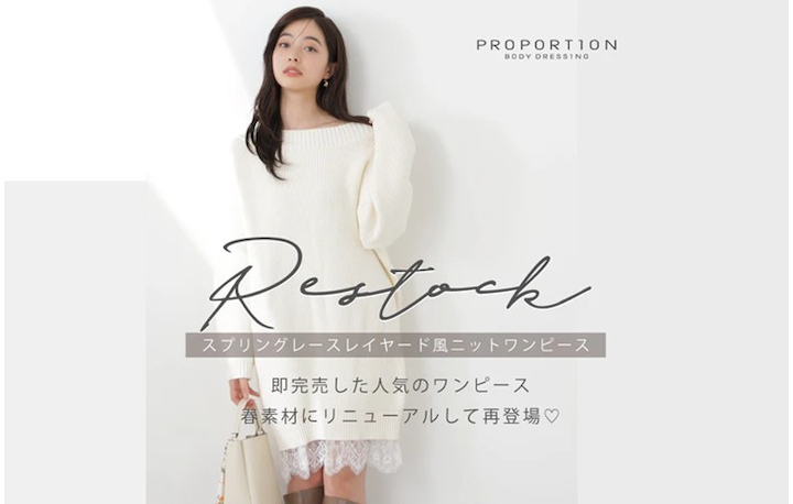 スプリングレースレイヤード風ニットワンピース 買えなかった方必見♥ 人気で予約完売した!あの限定ワンピースが春素材になって再登場! デコルテラインは好みで調整、オフショルダーとしても着用いただけます♡