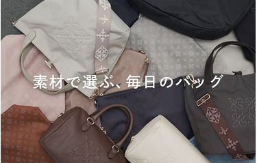 バッグブランド〈ラシット〉ならではの、多彩な素材ラインアップ。 素材ごとに、注目のアイテムをご紹介します。