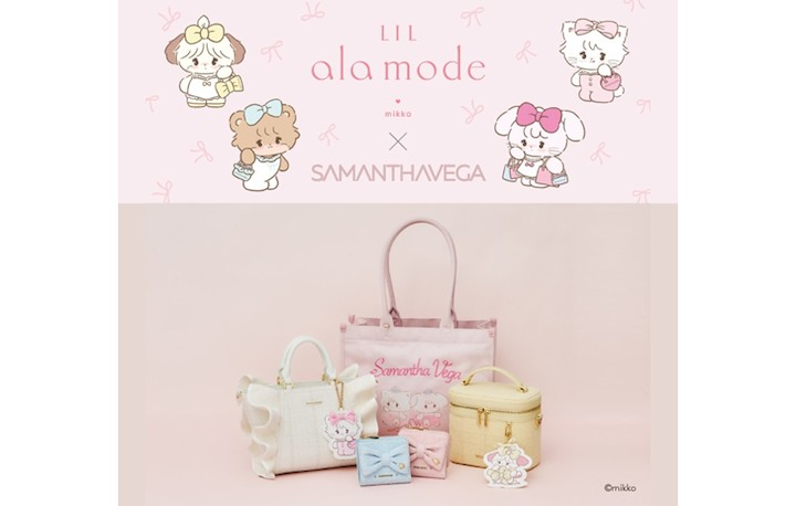 サマンサベガからLil ala modeとのコラボコレクションを発売。 それぞれのキャラクターをイメージしたカラーの キラキラとした可愛い生地のバッグや 折財布、チャームなどがラインナップ!