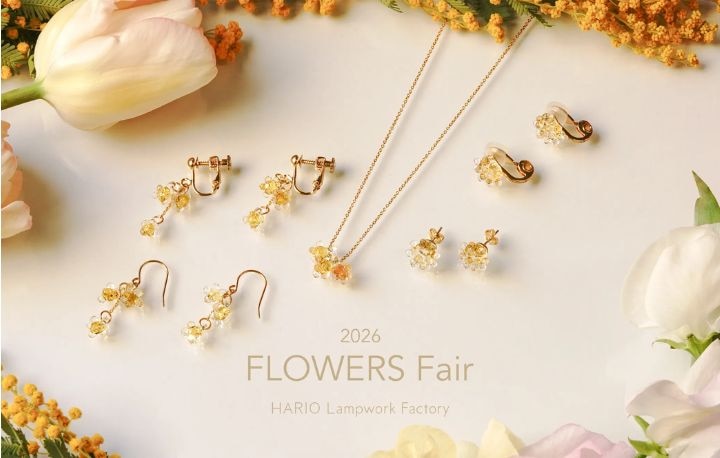 HARIO Lampwork Factory では、2月19日(木)から3月29日(日)のあいだ、“FLOWERS Fair 2026” を開催いたします。 春の訪れを彩るような、満開のお花のガラスアクセサリー。 定番の「Plants」シリーズのほかに、このフェアにあわせた限定アクセサリーをお作りいたしました。 フェア期間中、対象アクセサリーをご購入くださった皆さまには、数量限定で豆皿をひとつプレゼントいたします。 アクセサリートレーとしてもお使いいただけますので、ぜひご一緒にお楽しみください。