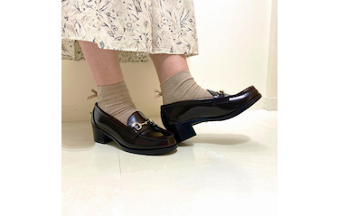 アッパーには柔らかなガラスレザーを使用しているので、足あたりが良いです。 従来の製品よりも少し高めの4.5cmヒールですが、歩きやすさは変わりません。 オーソドックスなデザインは、シーズンレスに通年お履きいただけます。 ゴールドで高級感のあふれるホースビットが華やかさとほどよい上品さのあるスタイルに仕上げてくれます。
