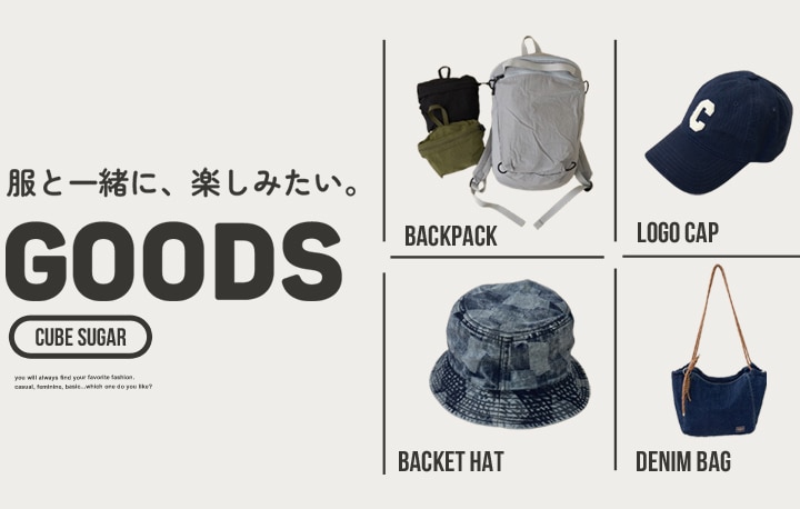 日差しが心地よくなってきたこの頃。 いつものコーデをアップデートしてくれる、優秀グッズのご紹介です! BACKPACK: 軽くてタフ!どんなスタイルにも馴染む万能アイテム。 BUCKET HAT: デニムのパッチワークがこなれた雰囲気に。 LOGO CAP: コーデの引き締めに。ふわっとサガラワッペンがポイント。 DENIM BAG: 肩掛けしやすいフォルムで、荷物が多い日も安心。 「シンプルだけど、どこか可愛い。」 そんなCUBE SUGARこだわりのアイテムで、春のスタイリングを完成させませんか?