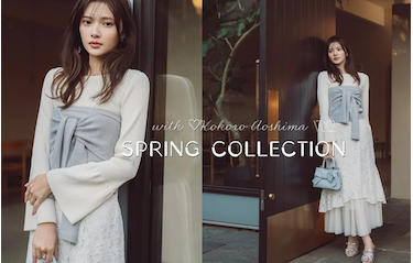 青島心さんと贈る spring collection vol.2 大人の女性に着る楽しみを広げる、 今っぽく甘さを効かせた軽やかなデザイン。 日常に寄り添う新作コレクションをお届け