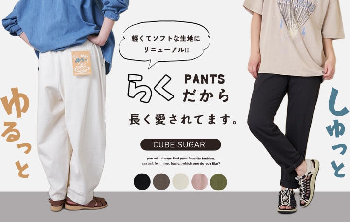 CUBE SUGARで人気の「らくシリーズ」がアップデートして登場! ✅ ゆるっと&しゅっとの絶妙シルエット ✅ ウエストゴムでストレスフリー ✅ 毎日使いたくなる5つのカラーバリエーション 春夏の軽やかなコーディネートに欠かせない一本です。 ぜひチェックしてみてくださいね♪