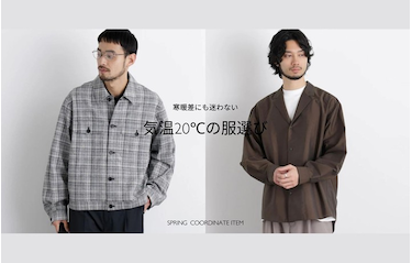 おしゃれを楽しめる15~20℃のスイッチシーズン。 まだまだ寒暖差のある時期だから長袖+羽織もので 温度調節もしやすいコーディネートがちょうどイイ。 日中・朝晩で寒暖差のある今の時期にお勧めのアイテムをご紹介。 是非ご覧ください。
