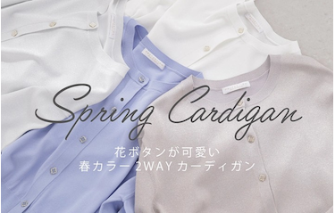 お花モチーフのボタンがさりげないアクセント。 カーディガンとしてはもちろん、ボタンを閉じれば プルオーバーニットとしても着られる2WAYデザインで、コーディネートの幅が広がります。 春らしいやわらかなカラー展開で、デイリーコーデを軽やかにアップデート。 シンプルなデザインだから、スカートにもパンツにも合わせやすく、オン・オフ問わず活躍します。 さらに、シルバーとラベンダーは上品なラメ入り素材。さりげないきらめきが女性らしさを引き立てながら、チクチクしにくい快適な着心地に仕上げました。
