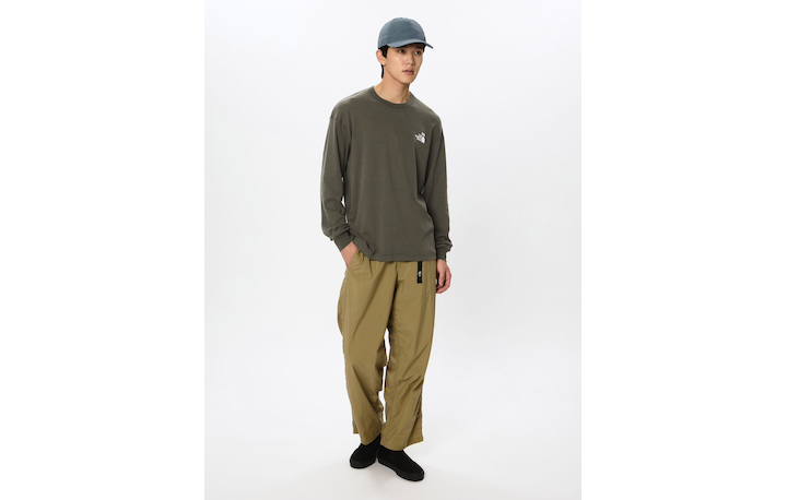 「ロングスリーブズーピッカーティー」 持続可能性や、動物及び自然環境の保護に対する意識の向上に付与することを目的として発信するコレクションの長袖Tシャツ 東南アジアを中心に生息する「カポック」の木の実から作られる、環境配慮型素材を一部使用 国内希少動物であるウミガラスの刺繍を組み合わせたハーフドームのロゴを左胸に配置 吸放湿性を備えたカポックとコットンを使用 スラブ感があり、なめらかな肌触りのニット生地 ■価格:¥9,020(税込)