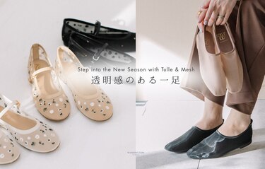 春の足元に、軽やかな透明感を。 今季注目のシアー素材は、繊細な透け感でコーディネートに抜け感と女性らしさをプラスしてくれます。 デイリーに取り入れやすく、さりげなく季節感を楽しめる一足。 カジュアルからきれいめまで幅広いスタイリングに馴染み、春夏のワードローブに一足あると活躍するアイテムです。