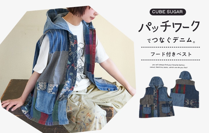 ひと目でときめく、こだわりが詰まった「パッチワークベスト」が登場! 濃淡の異なるデニム、ストライプ、そして遊び心のある花柄やチェックを組み合わせた、唯一無二のデザインです。 「いつものTシャツスタイルがなんだか物足りない…」 そんな時にサッと羽織るだけで、こなれ感たっぷりのアメカジスタイルが完成します。 大きなフード付きで後ろ姿まで可愛く、ゆったりとしたサイズ感なので重ね着もしやすいのが嬉しいポイント。 自分だけの特別な1着を、ぜひチェックしてくださいね。