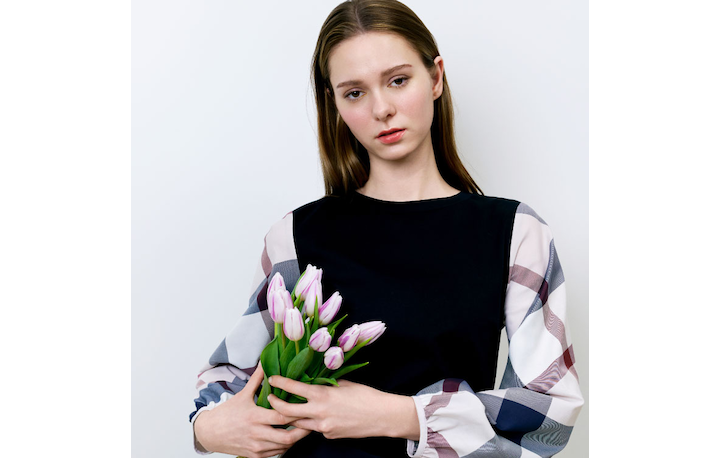 無地とクレストブリッジチェックの切り替えデザインアイテムをご紹介します。