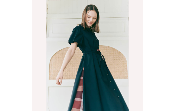 きちんと感と可愛らしさを兼ねそなえたシャツドレスが登場。上品なフラット襟に、チャーミングなバルーンスリーブ、サイドのクレストブリッジチェックが、ほどよいアクセントを添える1枚です。シックなブラック、ノーブルなネイビー、軽やかなベージュの3色展開。
