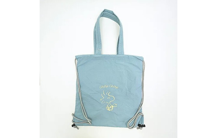 今回はスヌーピーから、ウッドストックの春っぽさ満開アイテムをピックアップしました。 鮮やかな水色と、黄色ギンガムのリバーシブルでどちらも可愛い! トートバッグとナップザック、そしてポーチをご紹介していきます!