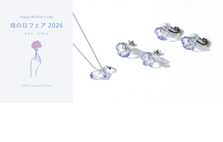 HARIO Lampwork Factoryでは、4月9日(木)から5月10日(日)のあいだ、「母の日フェア 2026」を開催いたします。
