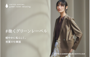 オフィススタイルのカジュアル化が広がる中で、グリーンレーベルがお勧めするのは、 こだわりの質感や機能を持った、デザインと快適さを両立する仕事服。 「ジャケット」「着映えトップス」「機能性」の3つのトピックスでご紹介します。