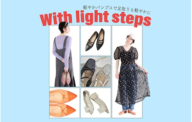 春のあたたかな風に誘われて どこかへ出かけたくなったら? シアー、ラインストーン… 心ときめく軽やか素材のシューズで 足取りもなんだか軽やかに。