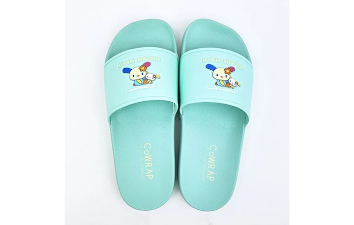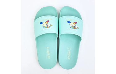 サンリオ×アコモデの人気シリーズ「CoWRAP」のコラボアイテムからシャワーサンダル。カラフルでポップな色合いだと気分も上がります