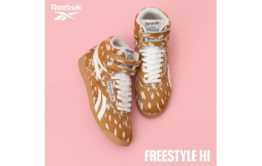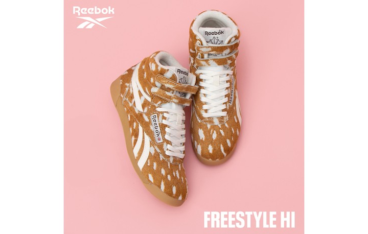 ABC-MART限定モデル。 1982年、エアロビクスブームの象徴として世界中で愛された、リーボックを代表する名作。 今作は、足首をソフトに支えるダブルストラップの造形はそのままに、 温かみのあるカウ柄とバンビ柄のポニーヘアアッパーを纏った遊び心溢れる表情が魅力。 クッション性に優れたEVAミッドソールと、 滑りにくいガムアウトソールの組み合わせが、軽やかで安定した歩行をサポート。 時代を超えて支持されるハイカットの造形美が、 現代の装いにも心地よく馴染む日常に溶け込む、優しい履き心地。