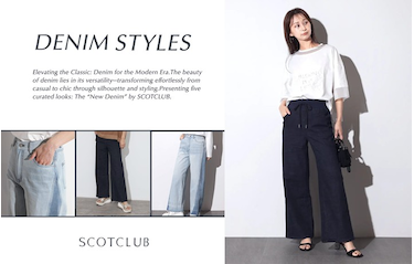 定番だからこそ、更新したいデニム。 シルエットや合わせるアイテム次第で、 カジュアルにもきれいめにも着こなせるのが魅力です。 SCOTCLUBが提案する“今のデニム”をご紹介。