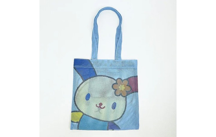 サンリオ×アコモデの人気シリーズ「CoWRAP」のコラボアイテムからフェイスアップメッシュトートバッグ。胸キュン確定アイテムです。