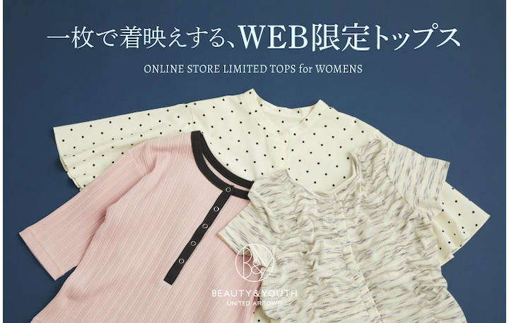 ここでしか出会えない、WEB限定トップス。 今の時期にぴったりな軽やかさとデザインにこだわったアイテムをピックアップ。