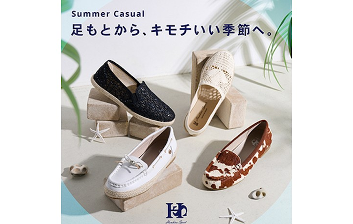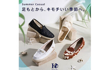 夏らしい素材使いと快適な履き心地を兼ね備えた 軽やかなカジュアルシューズ